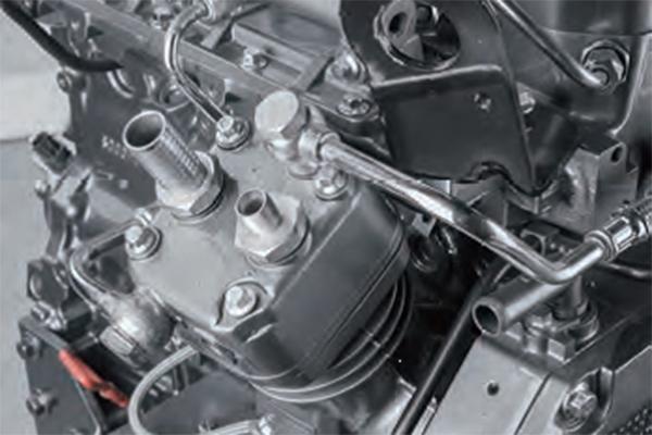 | Alimentation en carburant | Le système d'injection électronique HP3 optimisé par Denso est capable d'atteindre des pressions de 1800 bars. Il utilise des injecteurs à 7 perçages et à revêtement en céramique de chez Denso. Les injecteurs peuvent faire de multiples injections lors d'un seul cycle moteur afin de garantir une atomisation et combustion complète. Pompe mécanique : Pompe de très bonne qualité + vanne EGR externe. | La consommation en carburant est réduite de 10, cela permettant d'augmenter la durée de fonctionnement. Le moteur respecte le standard antipollution non-road III et des standards supérieurs. |